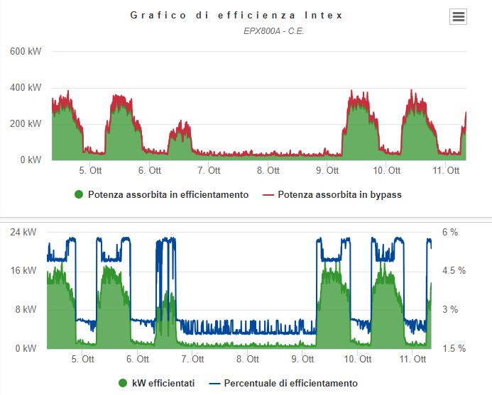 -  E-Power genera una efficienza energetica annua confrontabile con un impianto fotovoltaico pari a 39,89 kWp. Per produrre 39,89 kWp occorre una superficie di pannelli fotovoltaici di 191,49 m².