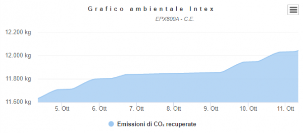 -  Considerando che un albero assorbe in un anno 22,0 kg di CO₂, E-Power ha recuperato 12053,58 kg di CO₂ pari a 547,89 alberi.