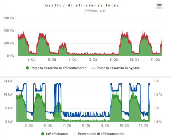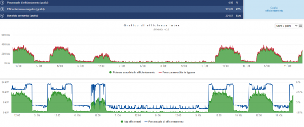E' interessante capire come l'impianto installato all'interno dell'azienda apporti diversi benefici positivi che impattano sicuramente in modo efficiente sulla generalità aziendale: il sito stesso, fornitoci dall'azienda Energy spa di Zanè (VI) al giorno 11 di ottobre ci segnala i seguenti dati: