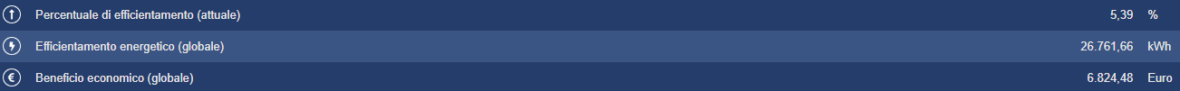 -  Considerando il consumo energetico annuo di una famiglia di 4 persone pari a 2700,0 kWh, E-Power ha recuperato energia per 9,92 abitazioni.