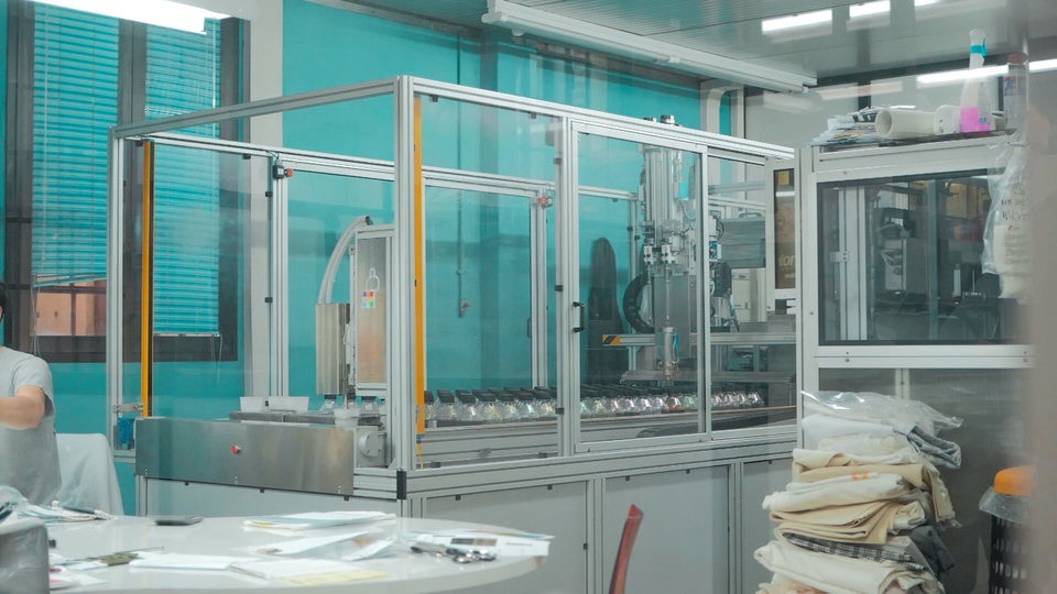 Tutte le operazioni (pesatura delle polveri e preparazione della soluzione, dosaggio della soluzione e preparazione di bagni di tintura, tintura del campione) vengono effettuate dalle macchine e monitorate a computer.